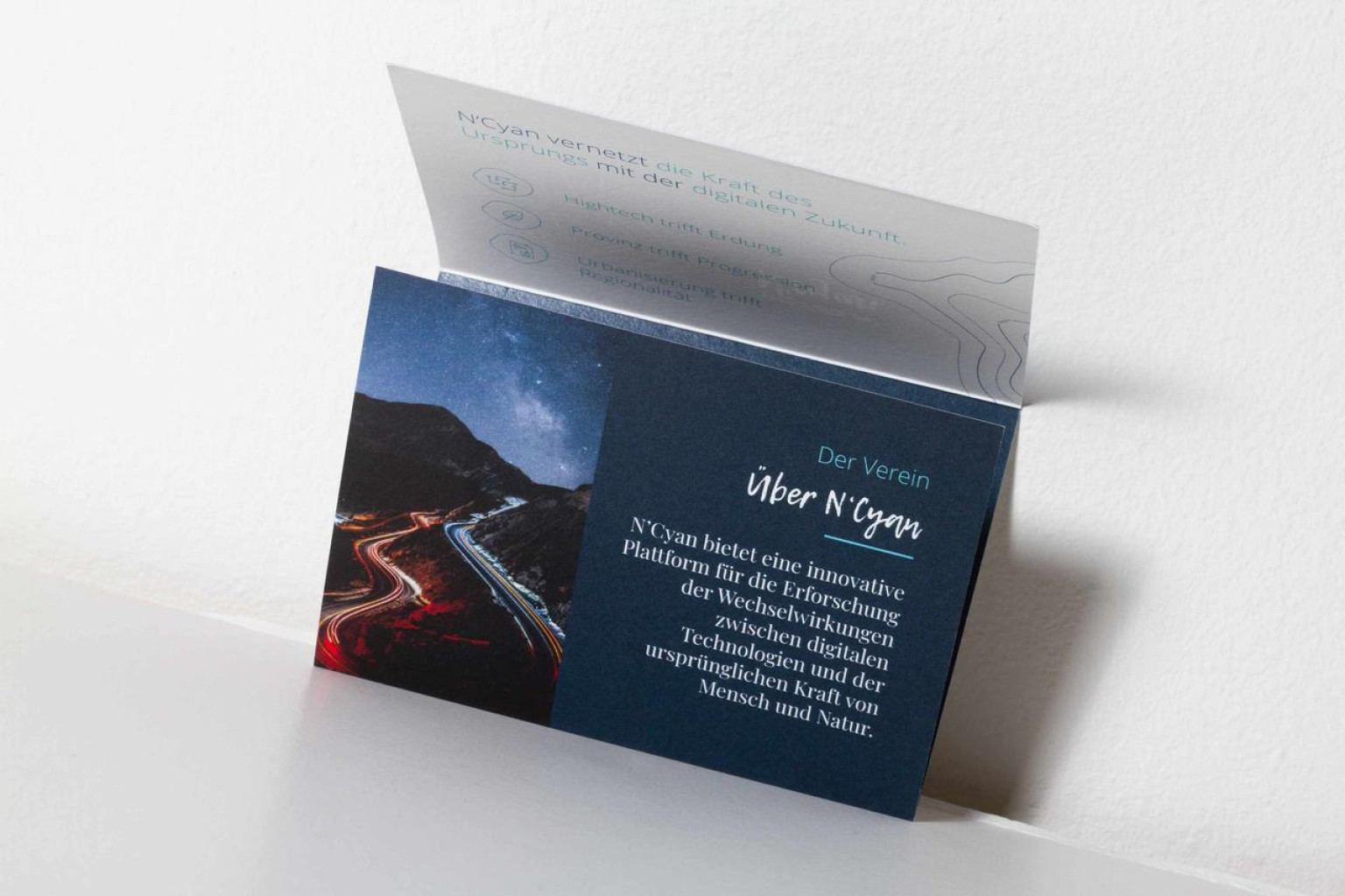 The vision of the N'Cyan association is to strengthen digitalization through empathy and to empower people through digital tools. The tension between preserving human needs and traditions while advancing digitalization is to be communicated through the brand and also found visually on the website and the print products to be designed.