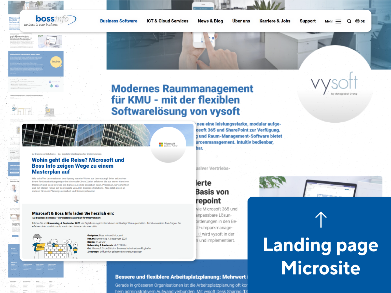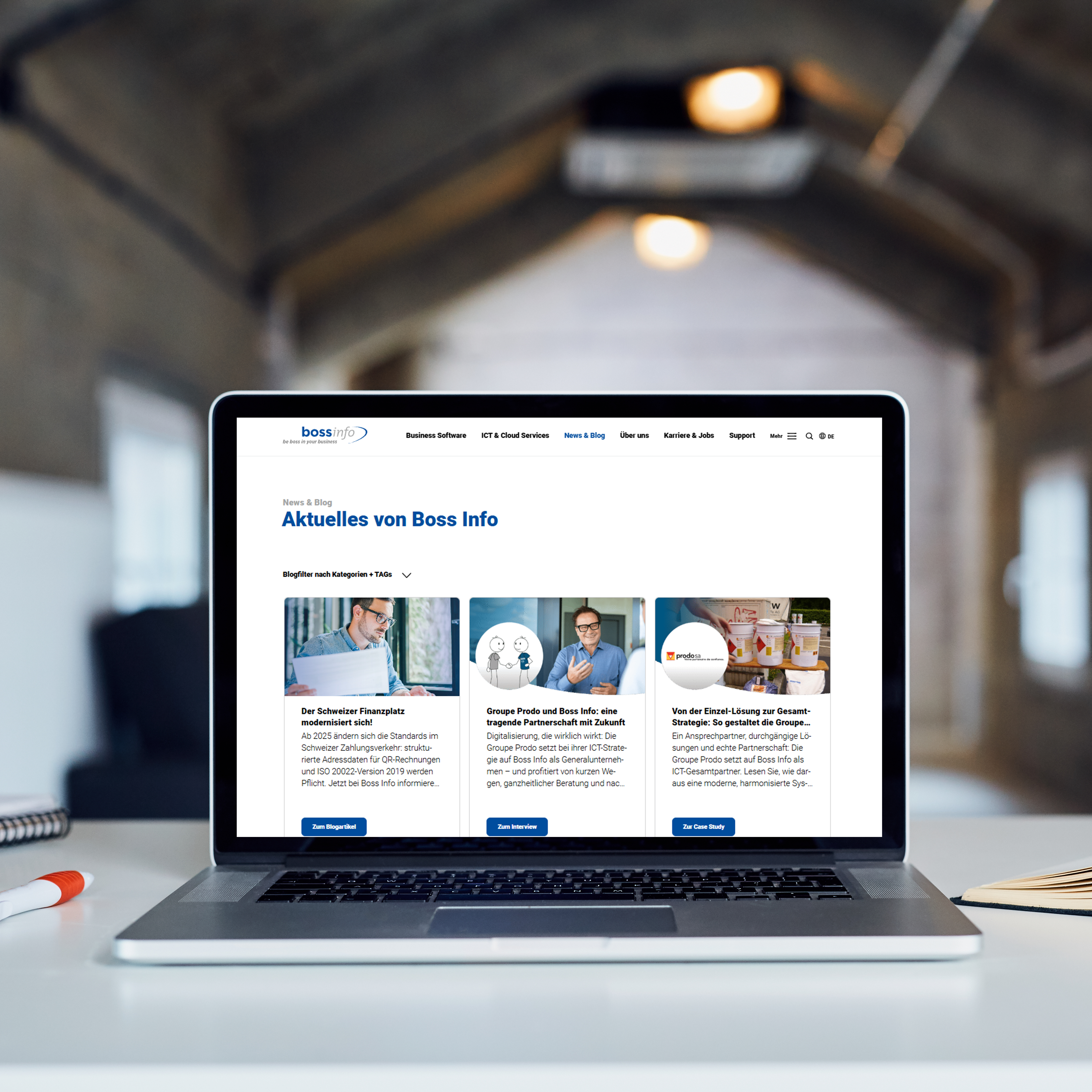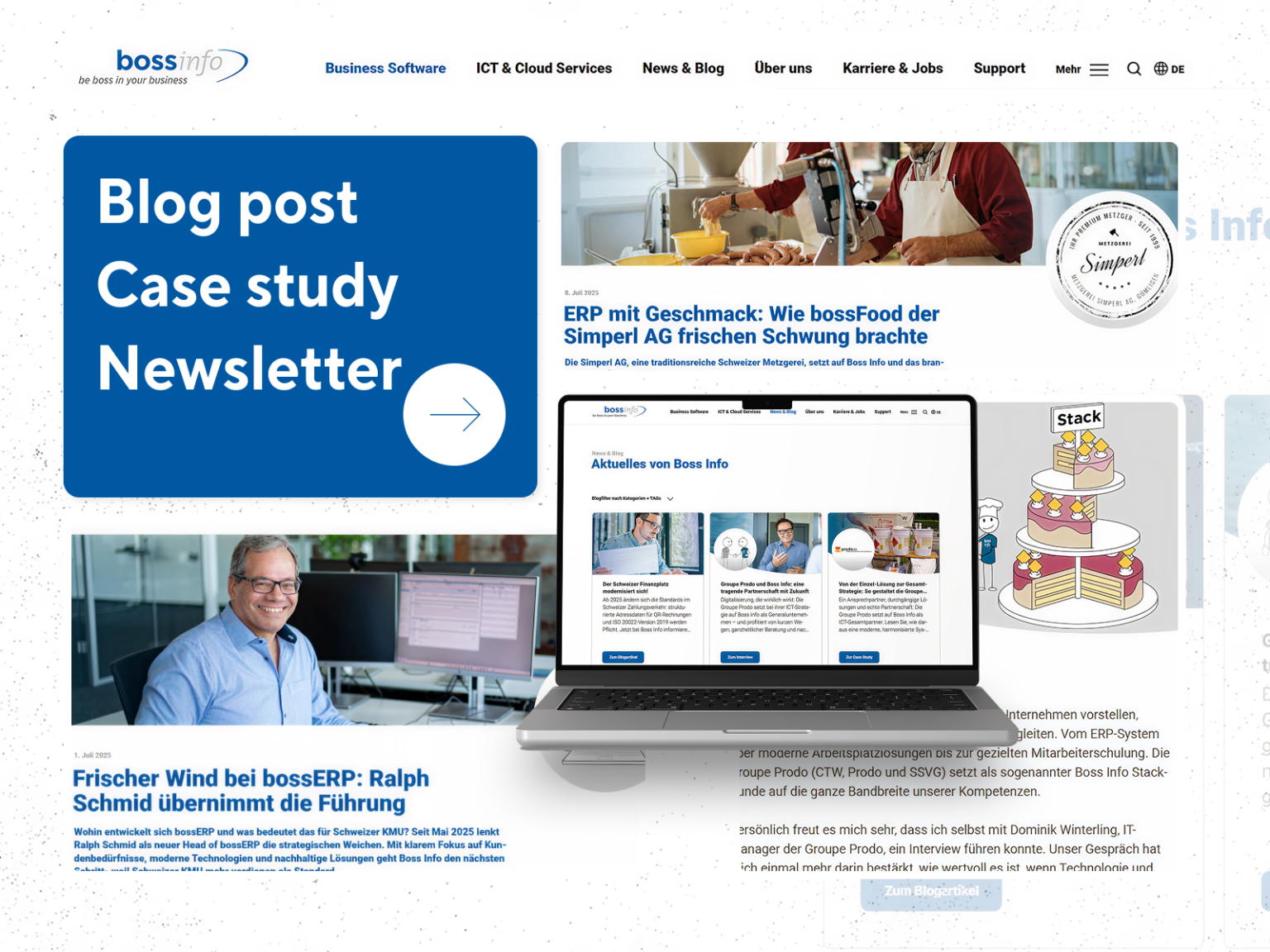 Die Boss Info AG ist einer der führenden IT-Dienstleister in der Schweiz. Rund 300 Mitarbeitende arbeiten täglich daran, Prozesse zu digitalisieren und das Daily Business für KMUs einfacher zu gestalten, unter anderem mit ERP- und ICT-Lösungen. Damit auch das eigene Marketing skalierbar und effizient bleibt, holte sich das Team externe Unterstützung an Bord: dryven.