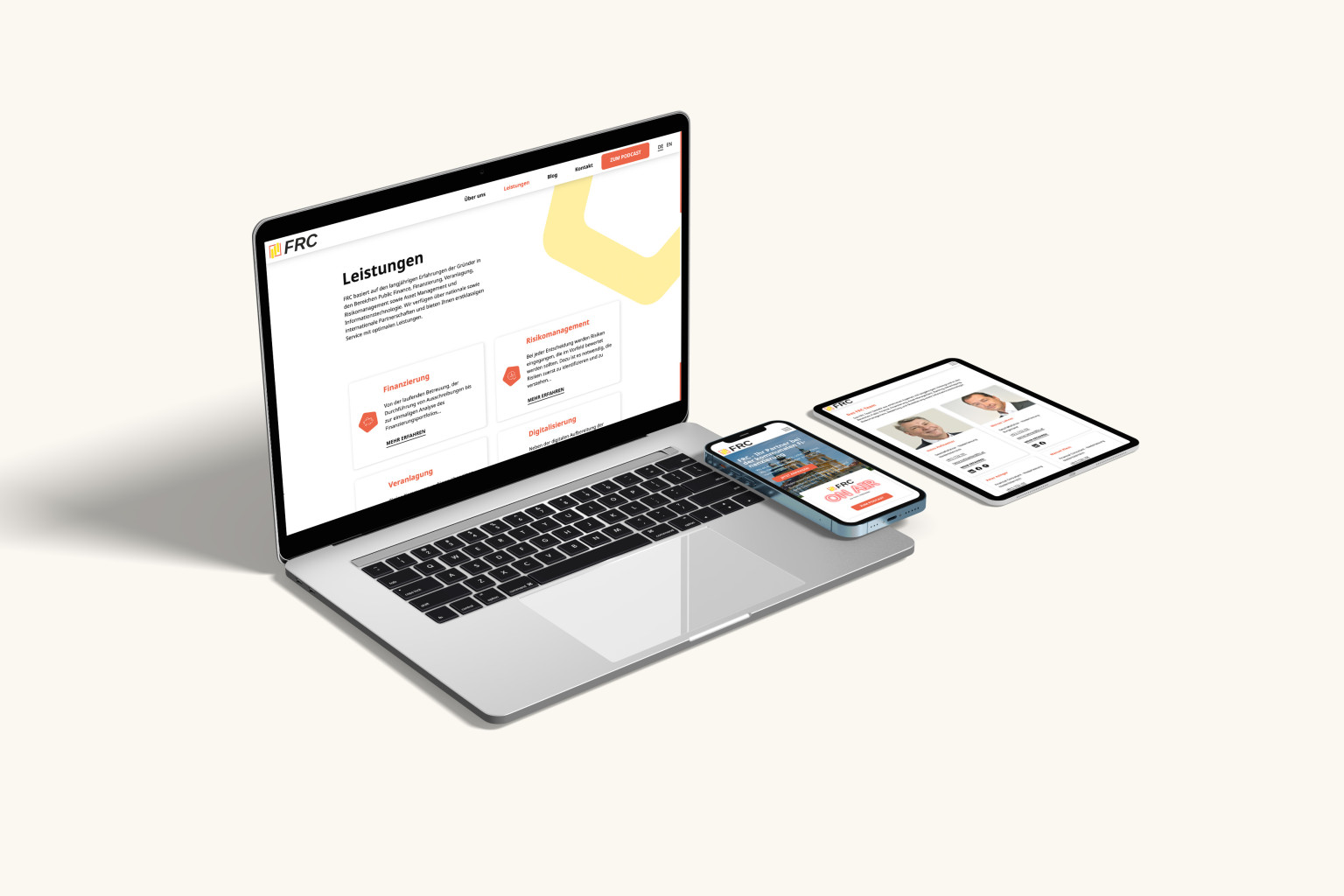 Die Informationsarchitektur der Website wurde überarbeitet, um die Leistungen stärker in den Vordergrund zu rücken. Ebenfalls wurde die Struktur der Pages von Grund auf neu angelegt, damit sowohl die Positionierung von FRC für die Zielgruppe sofort klar ersichtlich ist, als auch die Gründe, warum FRC als Partnerin gewählt werden sollte, verständlich präsentiert werden.